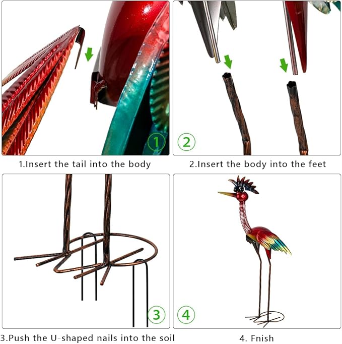 - Attractive Design: The rooster garden sculptures & statues have a unique design, with shaking wings and a neck designed as a movable spring to add fun and interaction. The feathers on the garden statues for outside are colorful and suitable for garden decoration