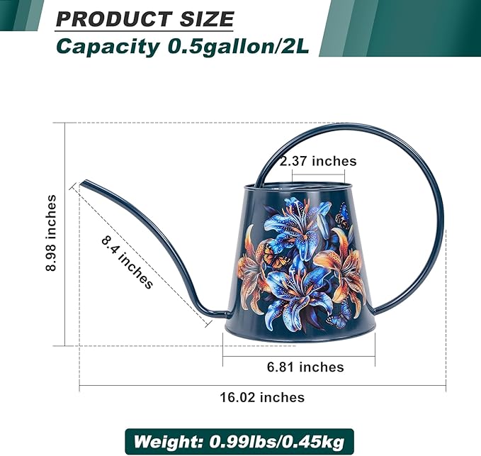 Berry&Bird House Plants Watering Can - Indoor&Outdoor 1/2 Gallon Stainless Steel Water Can with Long Spout Garden Decoration for Flower Bonsai Succulent Gardening Large Watwer Bottle (Lilium Brownii)