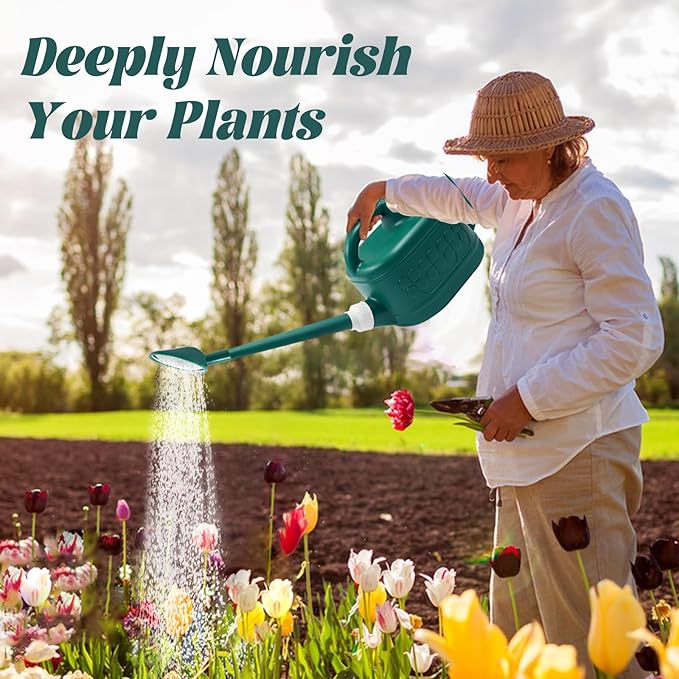 - Precise Watering: The large watering can has a removable long spout, easy and fast installation, strong sealing, no leakage; the long spout can easily reach the roots of the plant, accurate watering, avoiding splashing and water waste
