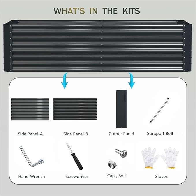 - Package: garden bed kit, installation tools, assembly manual, screw nut accessories.