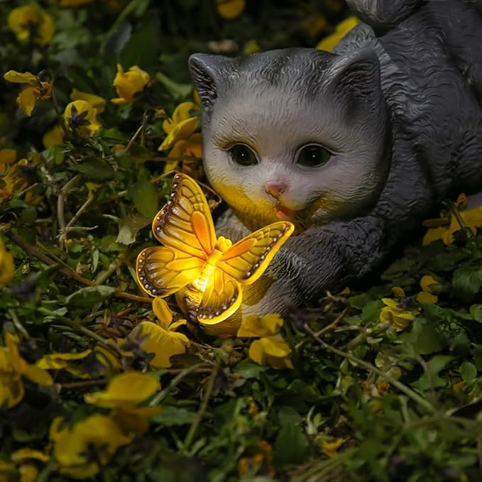 - Materials & Processes:Our garden cat statues are made of sturdy, waterproof resin that isn't afraid of the elements, so you can leave them outside all year round! Whether it's the playful charm of a cat or the vibrancy of a butterfly, every detail has been carefully designed to bring your garden to life!