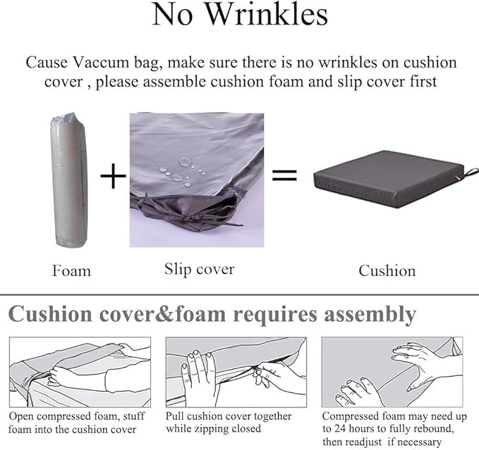 - 【Comfort & Support】 Experience ultimate comfort with the high density foam of these patio chair cushions set of 2. They provide excellent support for your hip, promoting good posture and allowing you to relax for extended periods of time. <b>All outdoor dining chair cushions are packed with vacuum bag. You need to assemble cushion to make there is no wrinkles in cushion covers</b>