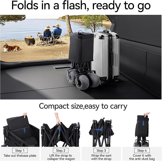 - 3-Second Fold | Save Space & Time: Patented one-click folding mechanism (reduces size by 70%, fits 2 units in SUV trunks).