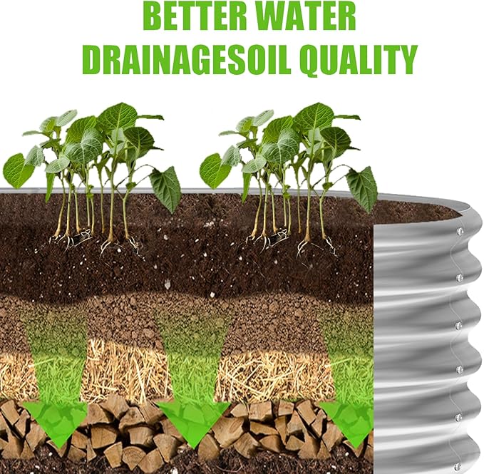 - Moisture-Resistant and Durable: Our galvanized steel raised garden bed offers superior zinc coating for enhanced protection against rust, crafted from premium galvanized steel for unparalleled durability and resistance to corrosion. Engineered for optimal plant health, the high-quality galvanized material also reduces the risk of root rot and improves soil quality.