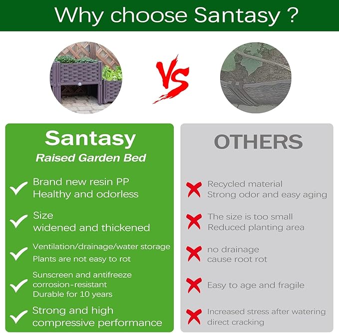 - 【Reinforced Material for Durable Use】:Our raised planter box is made of reinforced PP materials with high durability, lightweight and reliable structure, and will withstand seasonal changes without warping. The chemical-free surface ensures safe planting.