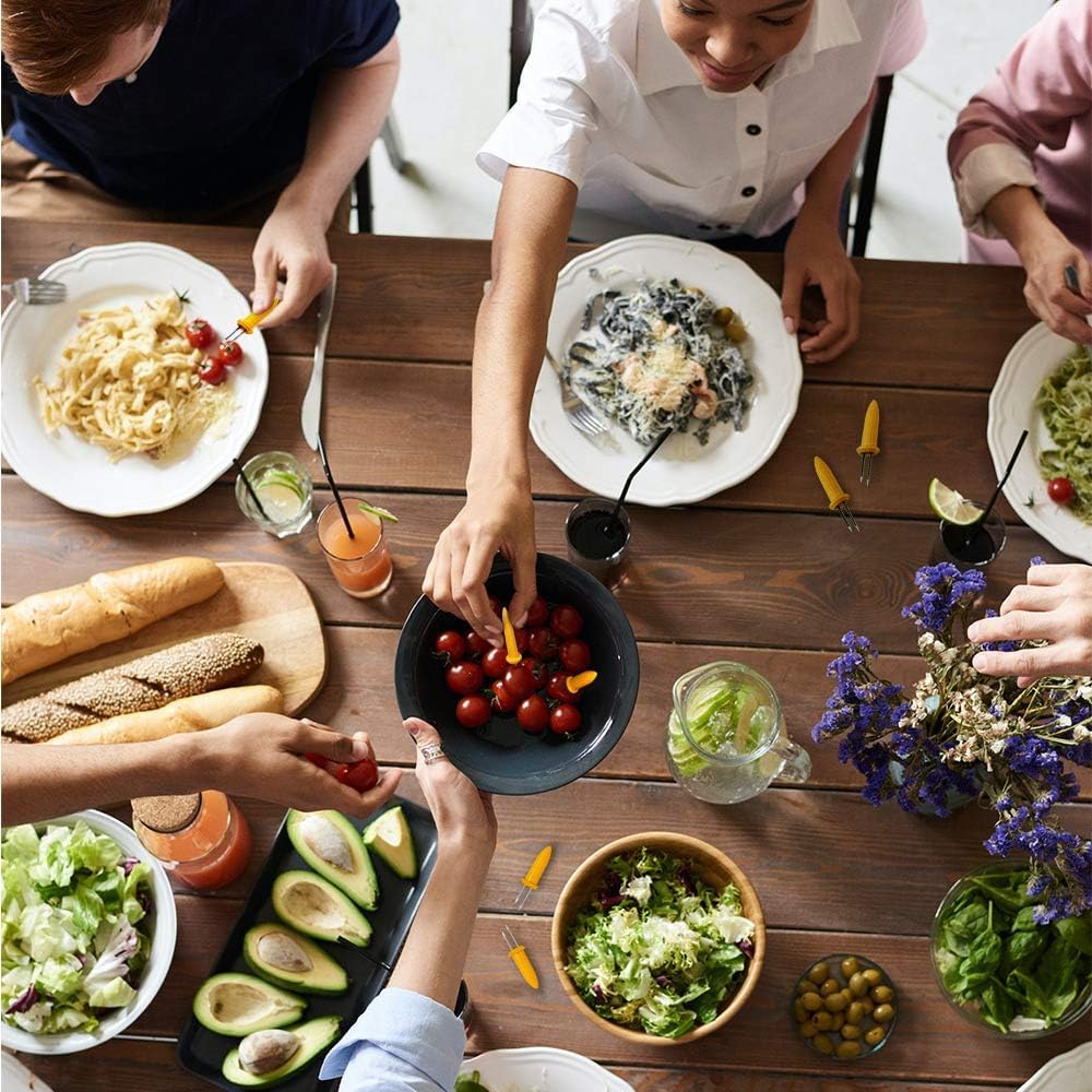 - [Easy-Clean & Long-Lasting] - Stainless steel spikes wipe clean in seconds; plastic handles resist stains and odors. Replace disposable wooden sticks sustainably – survives 500+ uses in dishwasher-safe cycles.