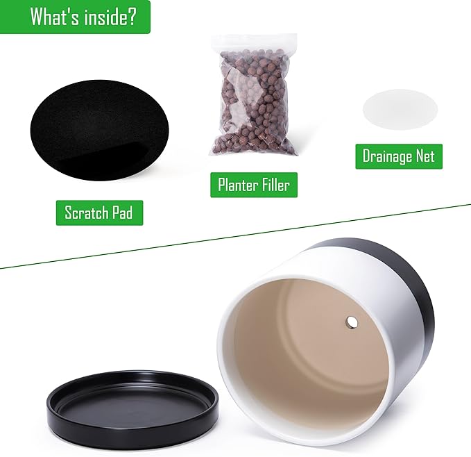 - Thoughtful Functionality: Includes a drainage hole to prevent overwatering, plus a mesh drainage net and scratch pad for added convenience.