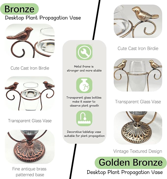 - [Note & After-Sales] This product includes 1 bronze and 1 gold bronze plant propagation vase (plants not included). If you have any quality problems or questions after receiving the product, please feel free to contact us for replacement or return. We are committed to serving every customer well.