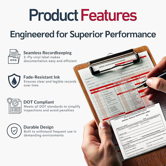 - DOT & FMCSA Compliance: Meets annual vehicle inspection requirements under 49 CFR Section 396, helping you stay compliant and avoid fines.