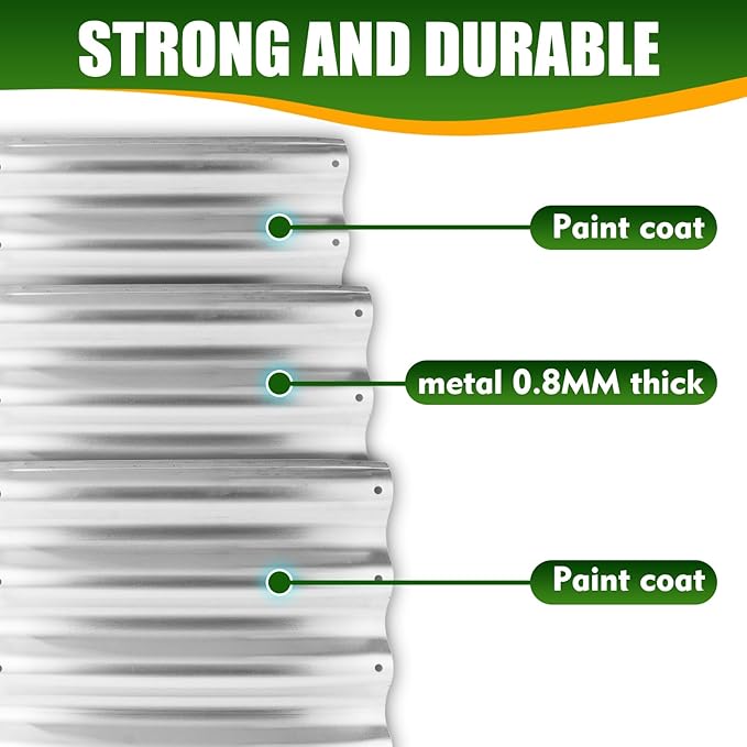 - Durable Construction: Made from 0.8mm thick galvanized steel for long-lasting use.All galvanized steel boards are locked and spliced with strong screws and butterfly nuts