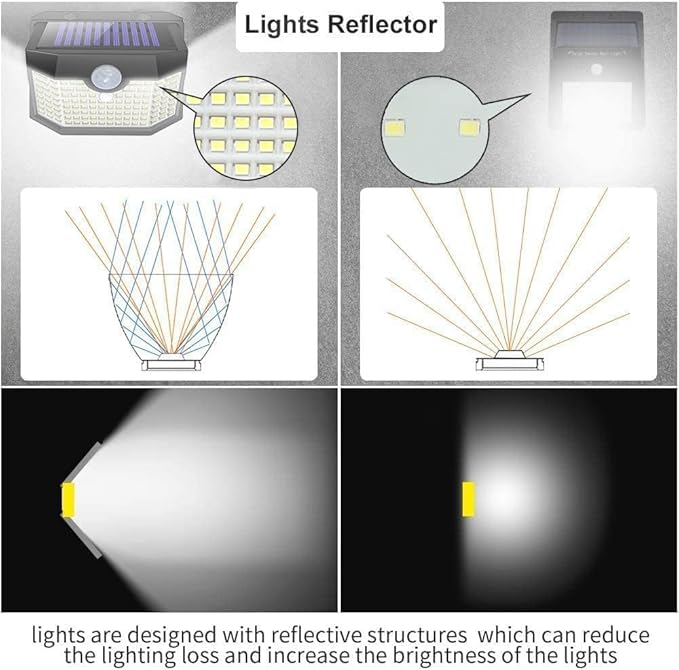 - 【Usage Tips】A compact 3.74×3.38-inch solar light delivering bright daylight illumination. For optimal performance, charge in direct sunlight for 6–8 hours before use, install in a sunny spot, and keep the panel clean from dust and debris.