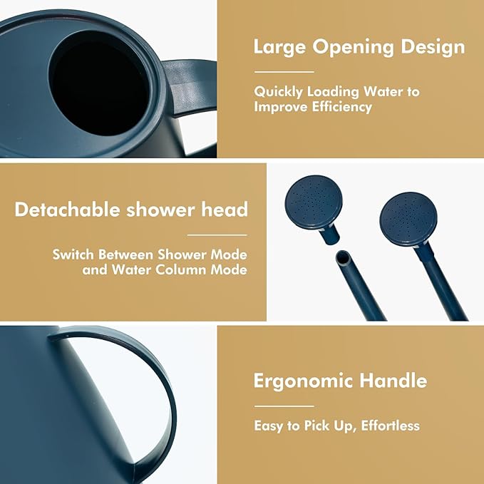 - [Details With Care, Double The Beauty]- Plant watering can with its long spout and removable design, the sprinkler is able to deliver water to the exact location of the plant so that every part of the plant can fully absorb it, so the long spout design easily penetrates to the bottom of the plant without spilling and wasting. In addition, the small watering can has a detachable shower head that sprays delicate and even water droplets so that plants can also enjoy a gentle bath.