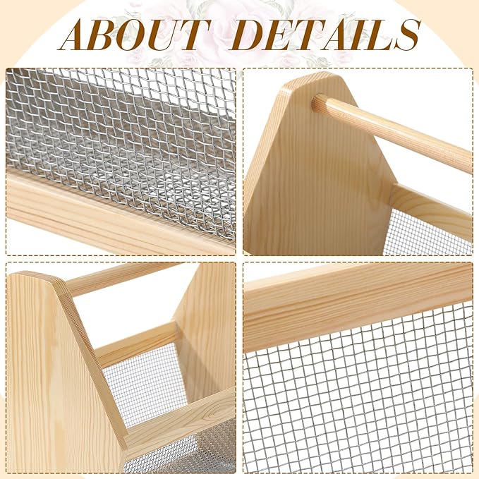 - Suitable Size and Material: this versatile gardening basket is 12 x 10 x 7.5 inches high and is the right size; It is made of pine wood with a rust-proof mesh wire bottom, which is more reliable, has a longer service life, and can stand the test of time
