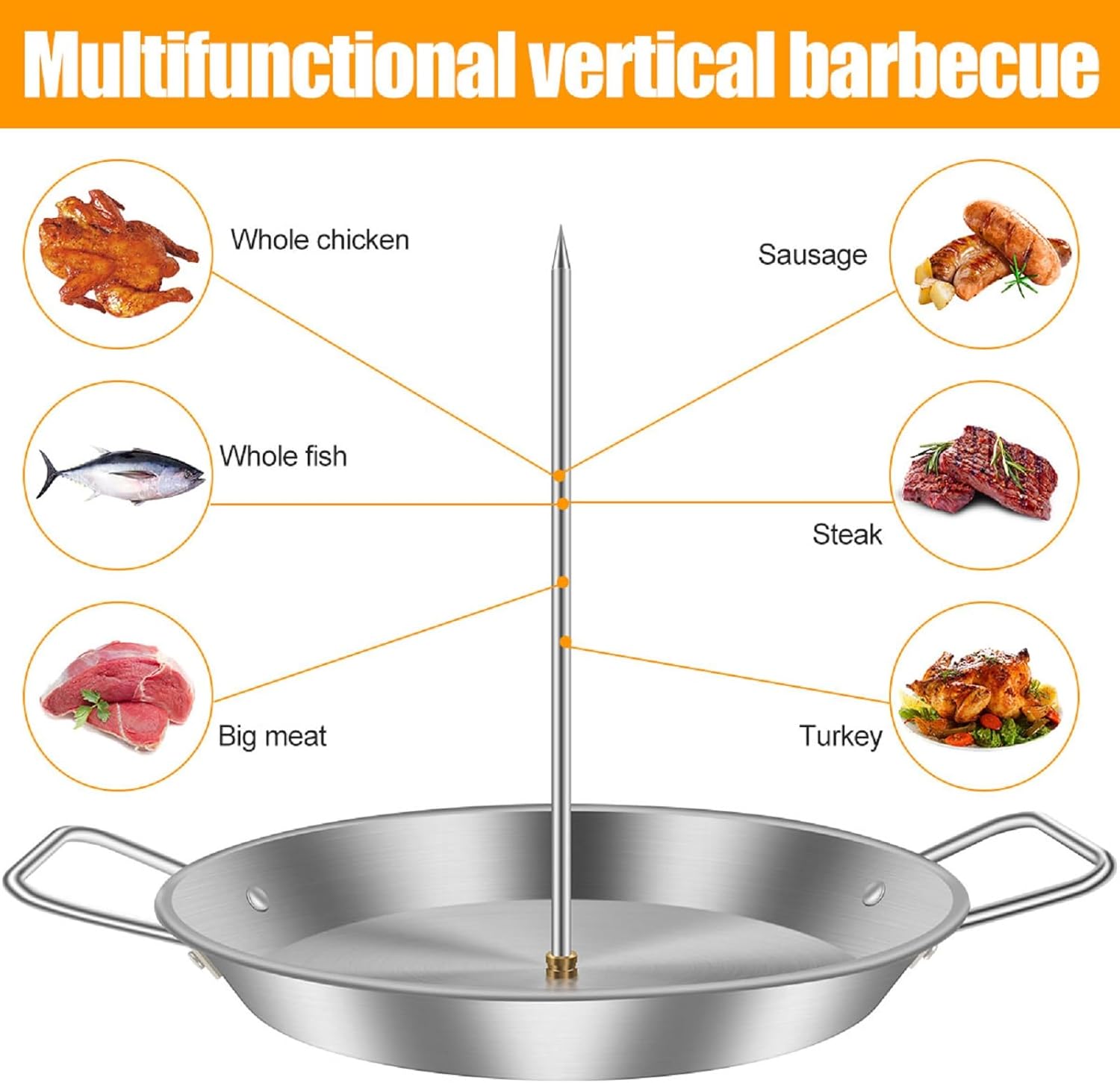 - [Multi-Size Spikes]: 3 interchangeable stainless spikes: 8" / 10" / 12",which fits for whole chickens, large roasts, kebabs, and other BBQ favorites