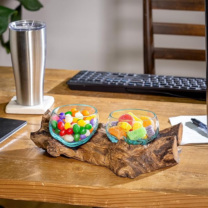 - ONE OF A KIND: Because each beautiful planter display is hand-made, each is unique. To assemble: simply set the glass topper on the driftwood base in the natural grooves of the base. The item is constructed by pressing the glass into the base, so each has a unique formation. Once correctly aligned, it will be a perfect fit! Simply place the glass to the base and you are all set to start displaying! Approximate overall size: 4.5"H x 13"L x 7"W, with 2 terrariums measuring 4" diameter.