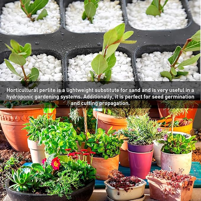- 100% NATURAL PRODUCT - Perlite is a naturally occurring, volcanic rock. When furnaced at high temperatures, Perlite "pops" and expands 7 to 15 times its original volume. The resulting lightweight particles are made up of microscopic spheres with a porous, broken surface that promotes plant growth. This allows aeration and drainage of the root system and provides holding capacity for water and nutrients.