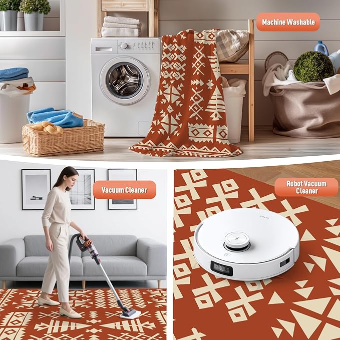 - Reversible Design: This double-sided patio rug features beautiful patterns on both sides, allowing you to quickly flip it over and instantly refresh your patio, porch, backyard, deck, RV campsite, or any outdoor space. A simple way to transform your style effortlessly