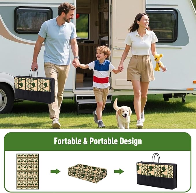 - Portable & Durable: This outdoor plastic rug with seams can be rolled or folded into a compact size and comes with a carrying bag for easy portability. Perfect for outdoor activities, picnics, sunbathing, and RV road trips. The heat-sealed edges prevent wear and tear, withstanding any environment, traffic, or scratches