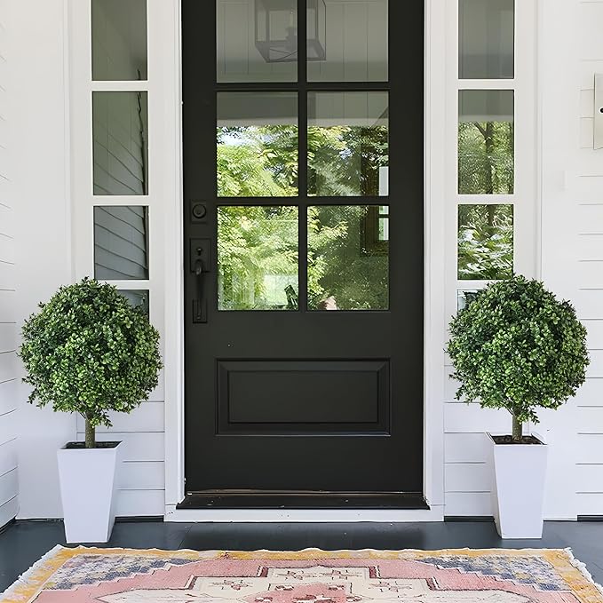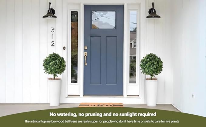 - 【Perfect artificial shrubs for garden】 The set of 2 boxwood topiary ball tree are perfect for adding a touch of sophisticated greenery to your garden .These artificial cedar ball trees are an excellent investment for people who want the beauty of greenery without the upkeep.