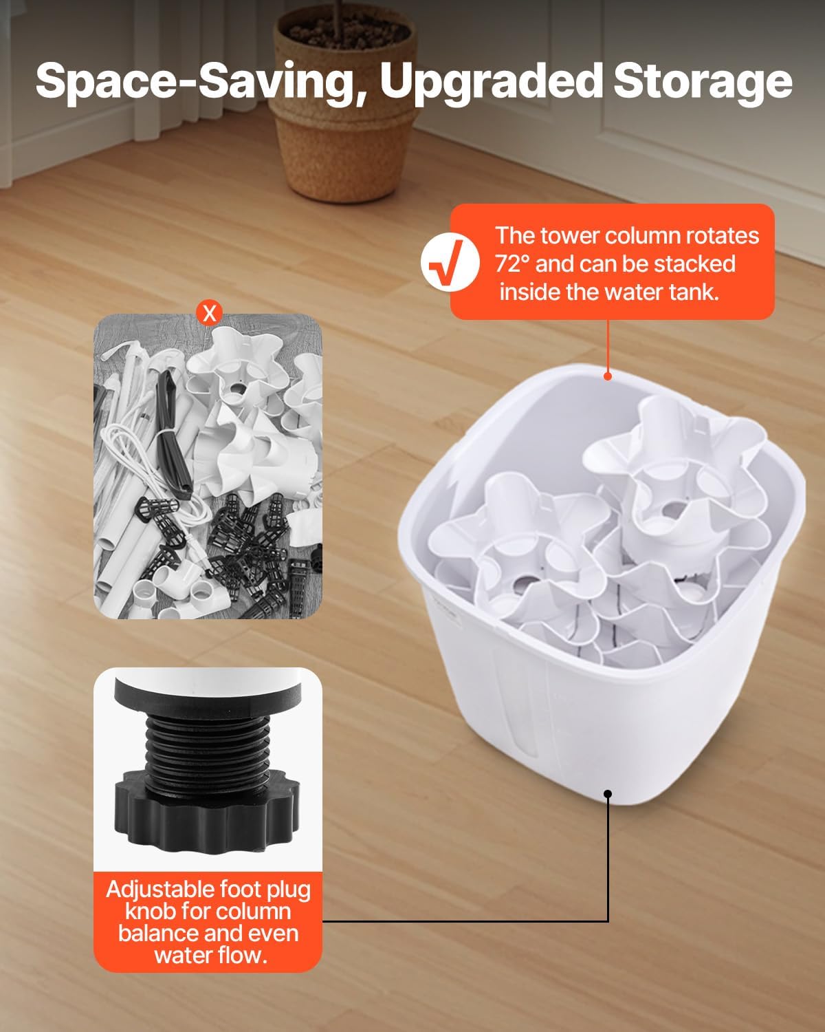 - Large Capacity Water Tank: The 20L water tank requires only one refill per month. With a transparent water level window, you can easily monitor the water level. The DC micro-pump (7W, quiet operation) provides a 600L/H flow rate and 2m/6.56ft lift height, ensuring continuous water circulation to supply oxygen to plant roots and reduce water waste.