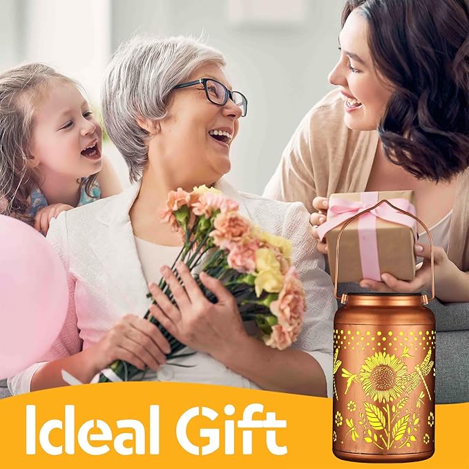 Solar Lanterns Outdoor Waterproof Hummingbird Garden Decor Christmas Gifts for Women Mom Grandma Hanging Lights Metal Decoration Outside for Yard, Patio,Backyard,Porch(Dragonfly and Sunflower)
