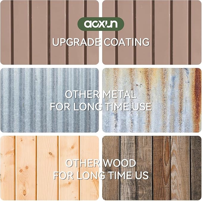 Aoxun 5x3 FT Shed Outdoor Waterproof Storage Shed Metal Garden Shed with Lockable Doors & Slooping Roof for Backyard, Patio, Poolside (Brown)