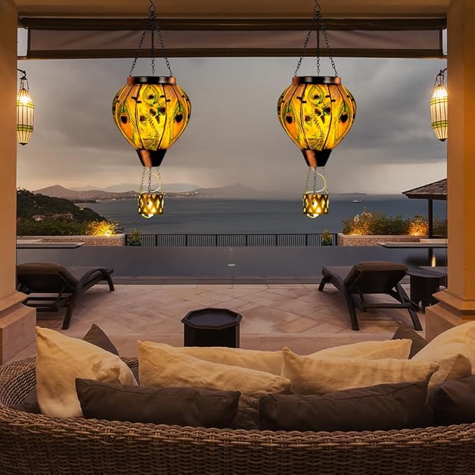 - Solar Lanterns Perfect Size: The product package contains 1 Peacock hot air balloon solar lanterns;Hanging solar lantern 5.5 "wide *18" high,easy hanging and durable,Perfect for various outdoor spaces like gardens,front doors, patios,pathways,yards,courtyards,pavilions,windowsills,or party decor