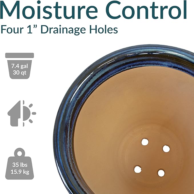 - DESIGNED FOR BEAUTY AND DURABILITY: This outdoor plant pot is crafted with a rich, hand-painted glazed finish that is kiln-fired for a classic, shining appearance. Subtle variations in color highlight the artisanal glazing process, making each piece truly unique. The durable ceramic construction offers natural UV and frost resistance, while its heavy weight adds stability to outdoor arrangements, keeping the planter upright in windy conditions.