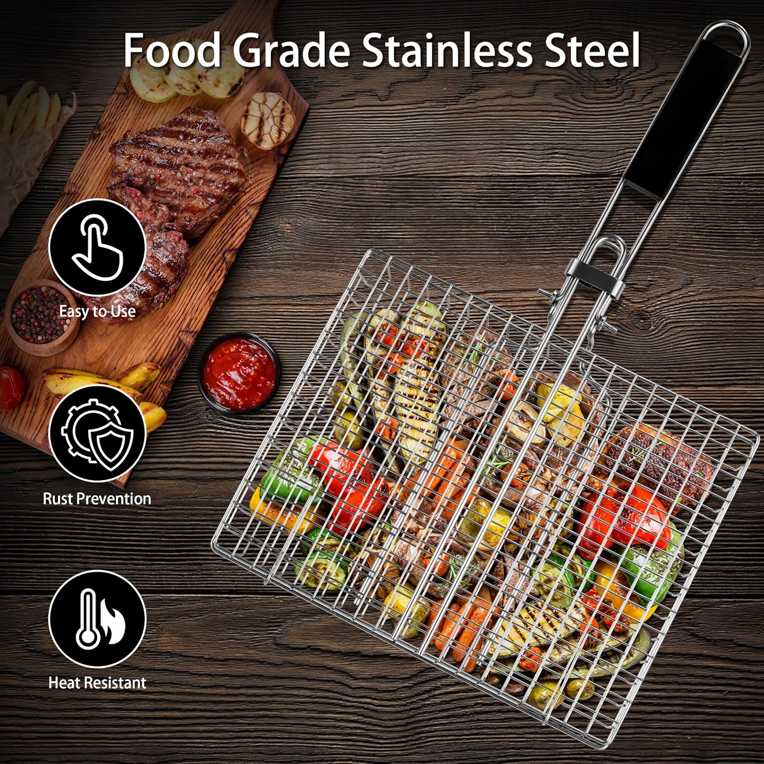 - 【Food-Safe & Rust-Resistant Construction】Crafted with premium stainless steel, this outdoor grill basket prioritizes safety and durability. The food-grade, non-toxic material prevents chemical leaching and resists rust, even with frequent use. Its sturdy build withstands high heat, ensuring years of reliable performance for backyard BBQs, camping trips, or beach cookouts.
