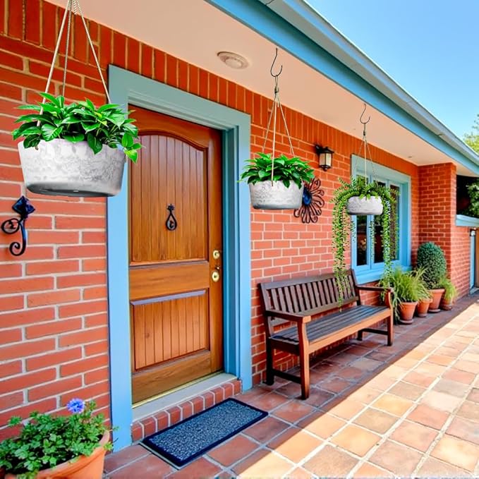 - Drainage Holes and Plugs: A water outlet is designed in the middle of the bottom of the hanging flower pots, helping prevent root rot and keeping your plants healthy. Coming with removable rubber plugs to ease the concern of overwatering for your indoor outdoor plants.