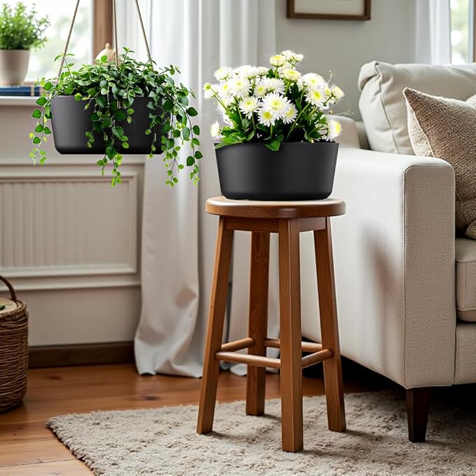 - Drainage Holes and Plugs: A water outlet is designed in the middle of the bottom of the hanging flower pots, helping prevent root rot and keeping your plants healthy. Coming with removable rubber plugs to ease the concern of overwatering for your indoor outdoor plants.
