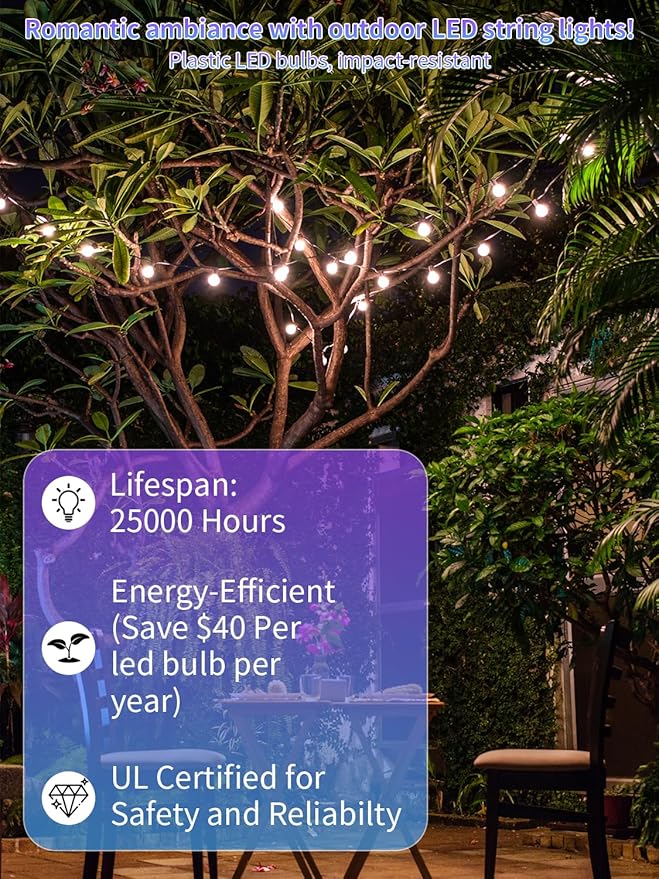 - COUSTOMER SERVICE:This S14 LED Patio String Lights reduce energy usage, lifespan is 30,000 hours,much longer than incandescent bulbs.If any question about the product,please feel free to contact us by e-mail and we will make it right in 24hrs