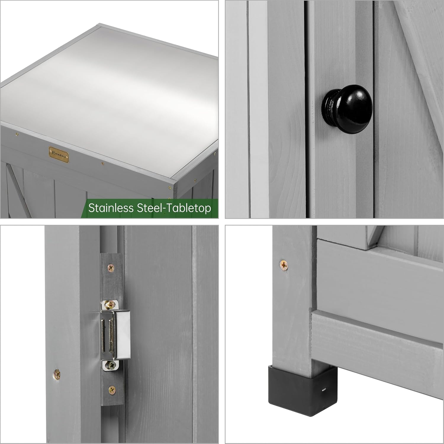 Outdoor Storage Cabinet for Patio, Garden Potting Bench Table with Shelves & Metal-Tabletop, Wooden Planting Work Station, Weatherproof