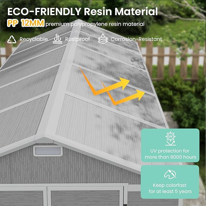 - ULTRA-DURABLE 12MM RESIN WALLS: Double-wall panels with steel frames survive -40ยฐF to 176ยฐF temperature swings. Tested for 8,000+ hours UV resistance (5-year fade-free guarantee) and saltwater corrosionโideal for coastal homes or Midwest storms