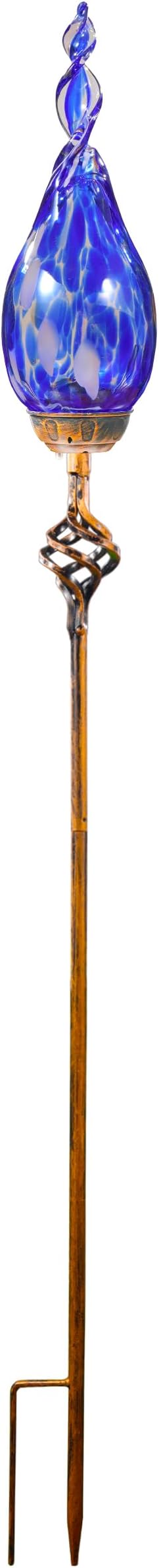 Solar Garden Lights, Decorative LED Flame Garden Stakes, Hand Blown Glass and Outdoor Waterproof Glass Stakes (Dark Blue)