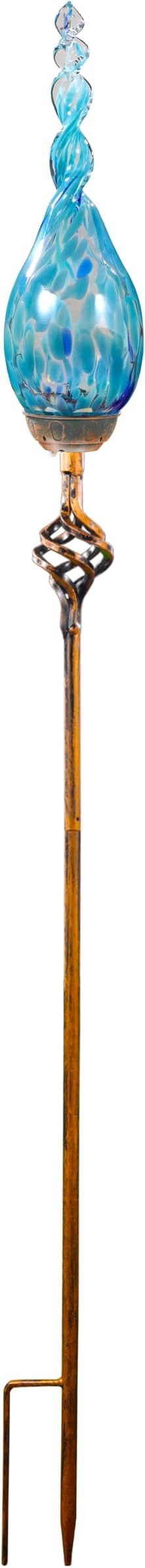 Garden Solar Light, Decorative LED Flame Garden Stakes, Hand Blown Glass and Metal Outdoor Decoration, 3 x 36 Inches (Light Blue)