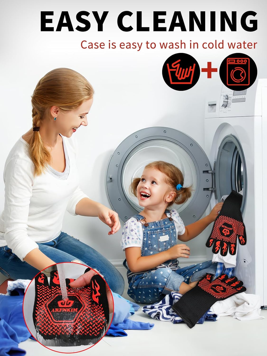 - Unmatched Heat Resistance: Our BBQ oven gloves are designed to 1472°F (800°C) withstand extreme heat, ensuring safe handling of hot grills, pans, and oven trays. Perfect for all your high-temperature cooking needs.