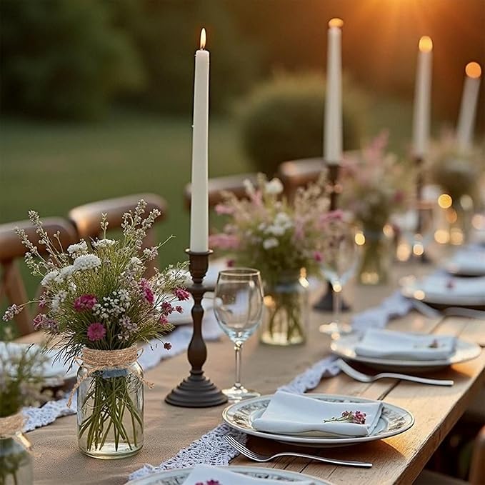 - 🏺 Commercial-Grade Bulk Vases:12-pack vintage glass centerpiece vases designed for weddings, banquets, and catering businesses. Clear mason jars offer reusable rustic charm for floral arrangements or candlelit tables