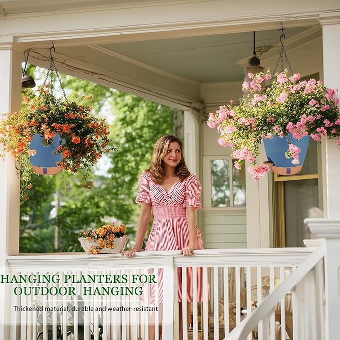 - 【Healthy Roots, Happy Plants】Our hanging planters feature GRID DRAINAGE HOLES at the bottom to quickly drain excess water and prevent standing water, while side ventilation ports maintain airflow around roots. The patented NO-SPILL WATERING LIP allows precise watering even in hard-to-reach hanging positions. No more messy water stains - just healthier plants that thrive!"