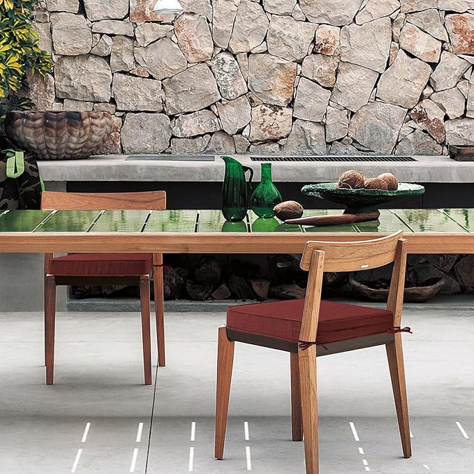 Sunbrella Square Corner Seat Cushions, 18.5" x 16" x 3", Set of 4, Indoor Outdoor Water Repellent Universal Chair Pads with Ties for Patio Furniture, Garden Dining Chairs, Spectrum Brick