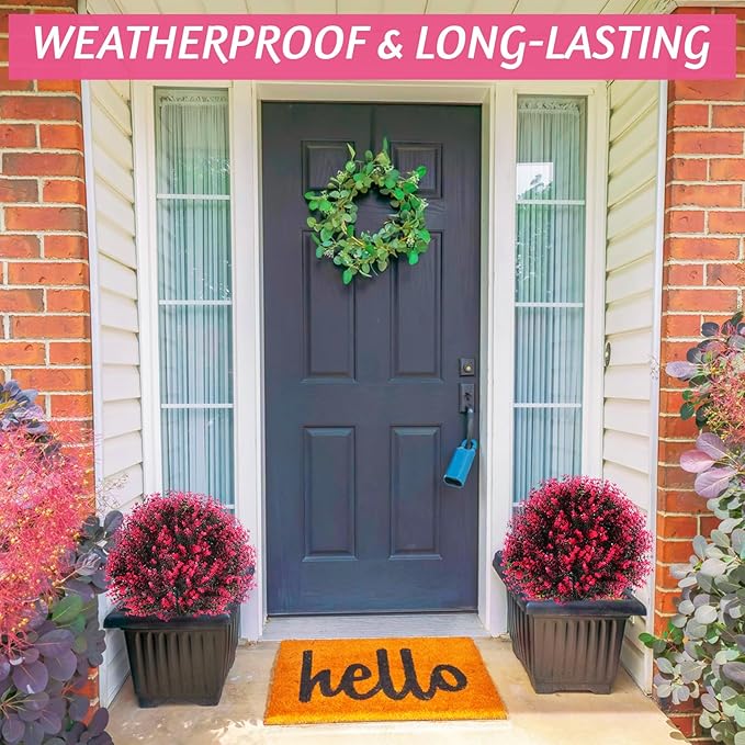 - UV Resistance: the fake bushes boxwood balls are UV resistant, will not fade in rain and sun, and will not deform under winds; This provides a lasting beauty, sturdy and long lasting, whether indoors or outdoors, such as garden, veranda, balcony, patio, front porch