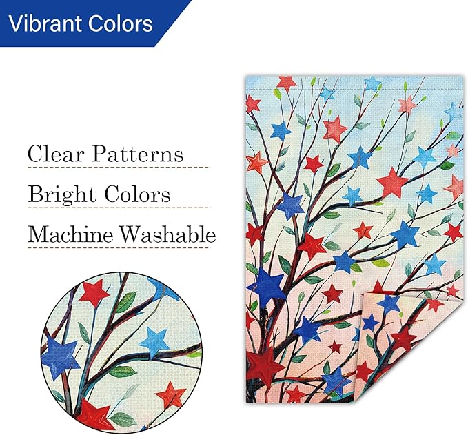 - Material: Our Independence Day garden flags are made from high-quality, washable Spun Polyester, with double-stitched edges to ensure long-lasting quality. Designed to withstand the elements, this flag will maintain its vibrant colors and crisp details all season long