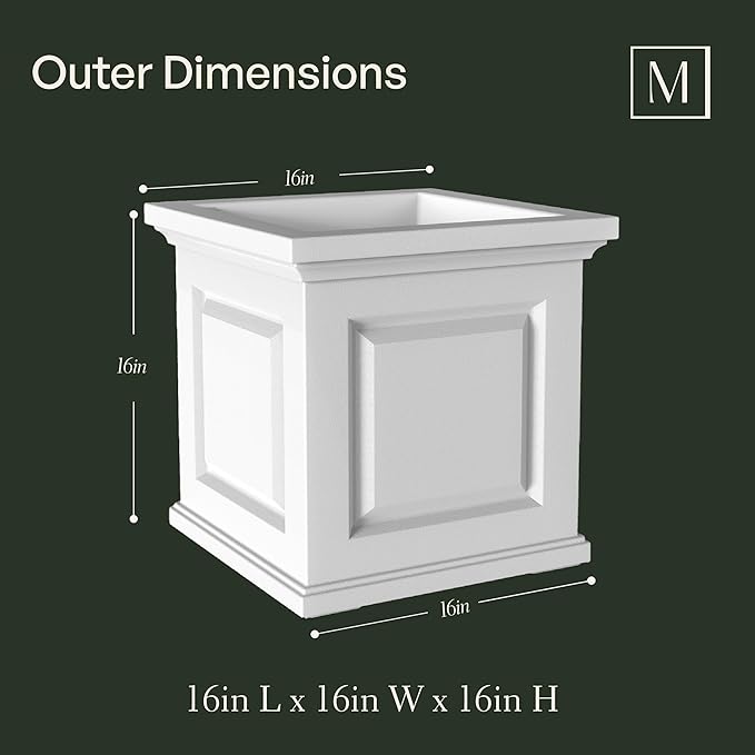 Mayne Nantucket 16-Inch Square Planter, 2-Pack – Self-Watering, Weather-Resistant Planter for Flowers – Durable Outdoor Design for Patio, Porch, or Entryway