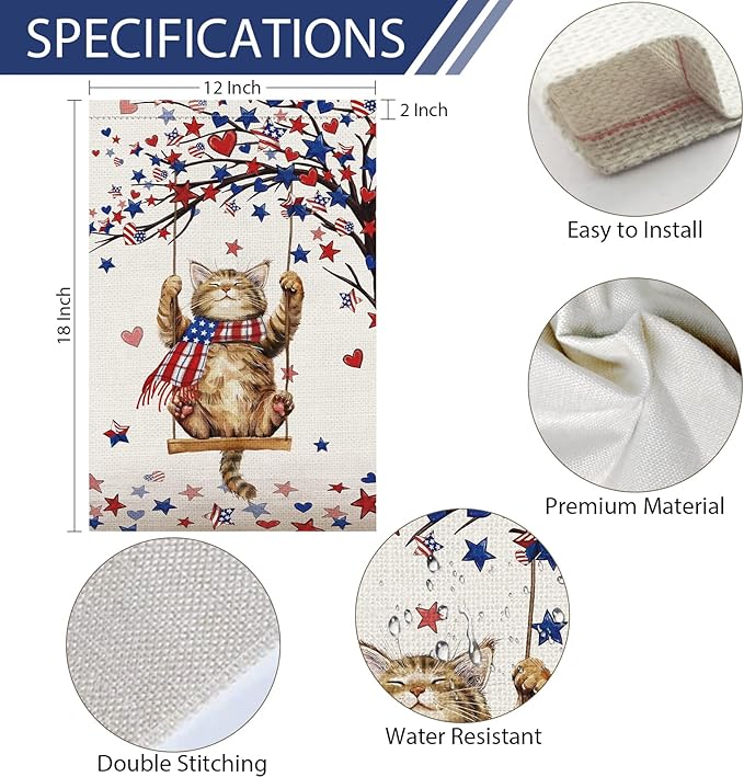 - Patriotic Cat Garden Flag - Our memorial day garden flag is made of two layers burlap material, weather resistant,and fade-resistant.High-strength double stitching ensures durability