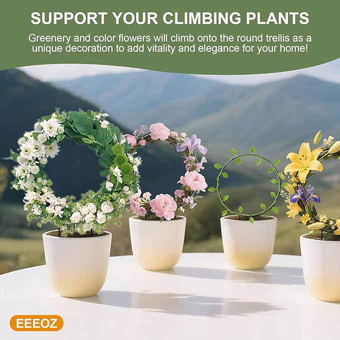 - 【Easy No-Tools Assembly】 - trellis for climbing plants indoor, simply push the circular trellises into soil/pots and attach plants with included ties - sets up in seconds
