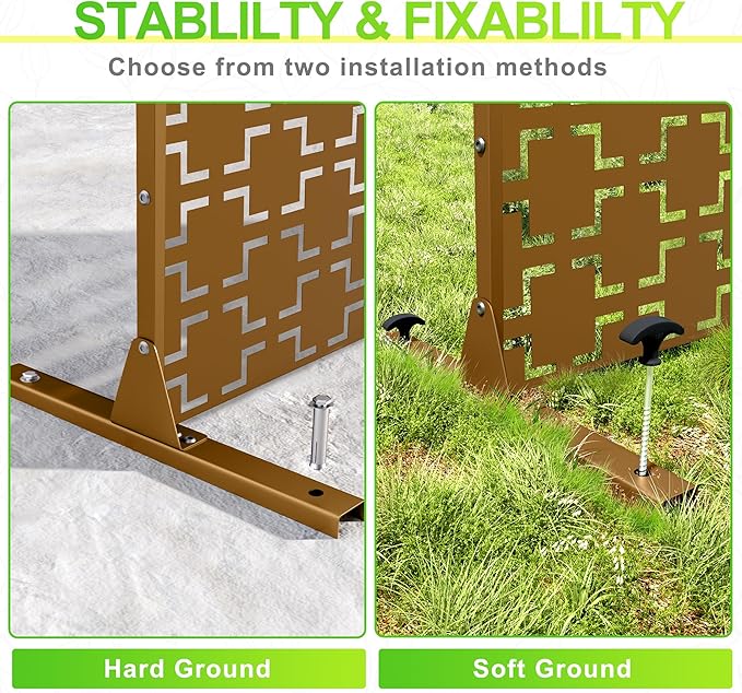 - 【Robust Metal Build】The metal privacy screen boasts a robust construction crafted from high-quality galvanized steel. Designed to endure the rigors of outdoor elements, its sturdy build guarantees prolonged durability.