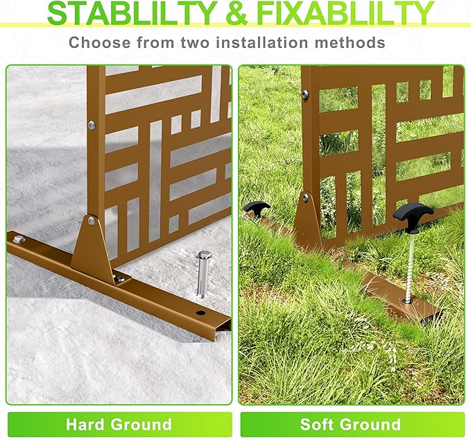 - 【Robust Metal Build】The metal privacy screen boasts a robust construction crafted from high-quality galvanized steel. Designed to endure the rigors of outdoor elements, its sturdy build guarantees prolonged durability.