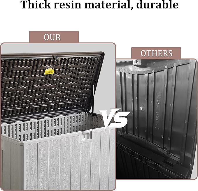 - Weatherproof Resin for Year-Round Use. Durable, waterproof resin, this deck box resists rain, sun, and UV exposure. Ideal for all-season use, it wonโt peel, rust, or warp like wooden or metal boxesโkeeping your items protected outdoors.