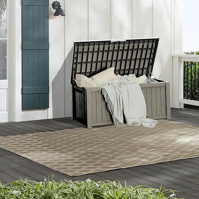 - Large Capacity: This 150-gallon deck box offers ample storage space for your outdoor accessories, and it has a 600-pound weight capacity and can be used as a separate patio seat or indoor table.