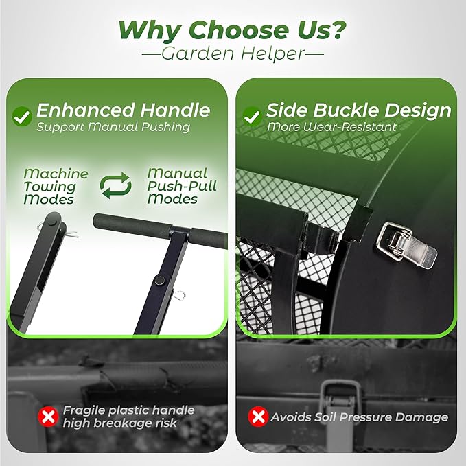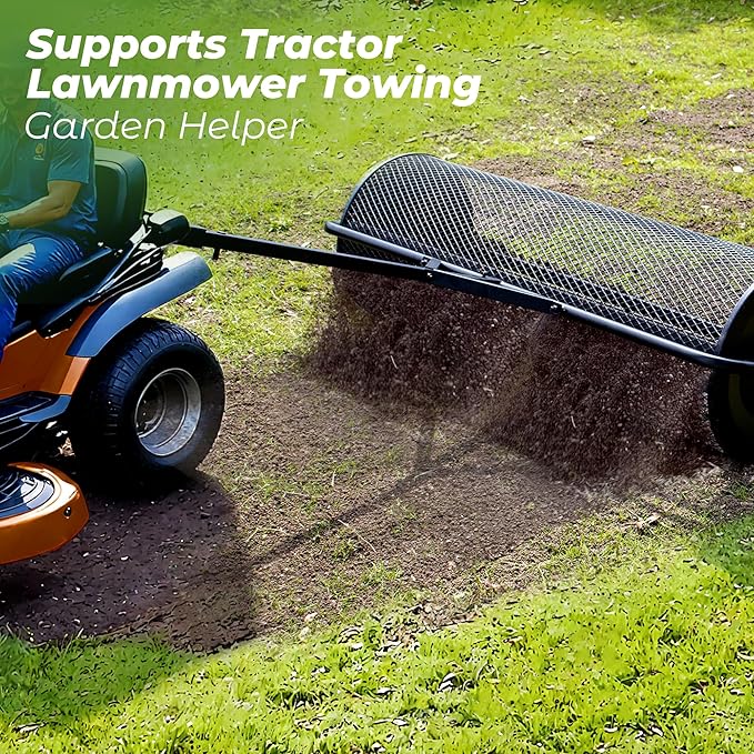 - MANUAL PUSH & TOW-BEHIND DUAL MODES: Equipped with an ergonomic T-handle for manual push/pull operation and compatible with garden machinery for tow-behind use. With the upgrade T-handle to avoid broken and makes it more durable and sturdy. Ergonomic rubber handle grips for non-slip and comfortable. Flexible functionality meets various lawn sizes and user needsโperfect for homeowners and professional landscapers alike.